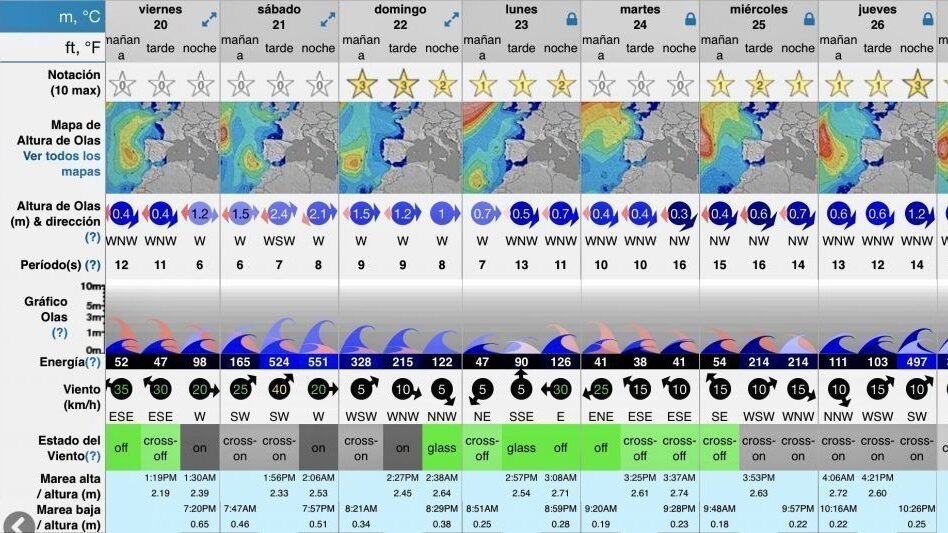 A report showing swell size, period, wind direction, and tide. The surfer’s daily bible.